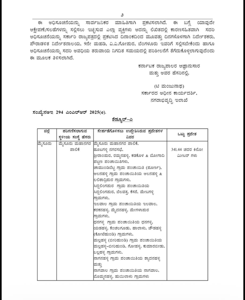 ಗ್ರೇಟರ್ ಮೈಸೂರು ಗೆ ಅಧಿಸೂಚನೆ