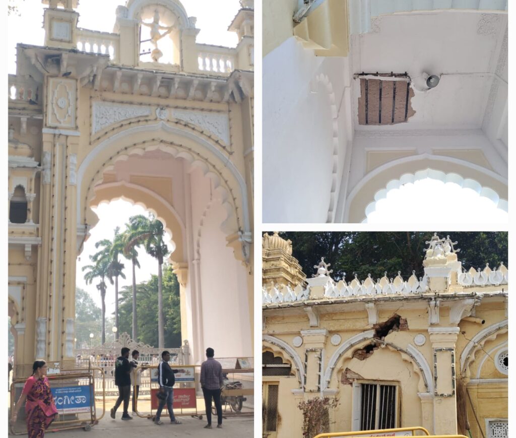 ಅರಮನೆಯನ್ನು ಸೂಕ್ಷ್ಮವಾಗಿ ಗಮನಿಸಿದರೆ ಅನೇಕ ಗುಮ್ಮಟಗಳು, ಕಮಾನುಗಳು, ಗೋಪುರಗಳಲ್ಲಿ ಬಿರುಕುಗಳು ಕಾಣಿಸಿಕೊಂಡಿದೆ. ಹಿಂದೊಮ್ಮೆ ಮಳೆ ಬಂದಾಗ ಅರಮನೆ ಸೋರುತ್ತಿದ್ದ ಉದಾಹರಣೆ ಸಹ ಇದೆ. ಇಂದು ಬೆಳಗ್ಗೆ ವರಾಹ ದ್ವಾರದ ಛಾವಣಿ ಗಾರೆಯ ಪದರಗಳು ಕೆಳಗೆ ಬಿದ್ದಿದೆ. ಅದೃಷ್ಟ ವಶಾತ್ ಕೆಳಗೆ ಬೈಕ್ ನಿಲ್ಲಿಸಿದ್ದರಿಂದ ಪದರಗಳು ಬೈಕ್ ಮೇಲೆ ಬಿದ್ದಿದೆ. ಬಿದ್ದ ರಭಸಕ್ಕೆ ಬೈಕ್ ಹ್ಯಾಂಡಲ್ ಬೆಂಡಾಗಿದೆ. ಅರಮನೆ ಮಂಡಳಿಗೆ ವಿಷಯ ತಿಳಿಯುತ್ತಿದ್ದಂತೆಯೆ ಪದರಗಳ ಅವಶೇಷಗಳನ್ನು ತೆರವುಗೊಳಿಸಿ ಸುತ್ತ ಬ್ಯಾರಿಕ್ಯಾಡ್ ನಿಲ್ಲಿಸಿ ಏನೂ ನಡೆದೇ ಇಲ್ಲವೆಂಬಂತೆ ತೋರ್ಪಡಿಸಿಕೊಳ್ಳಲಾಗಿದೆ.